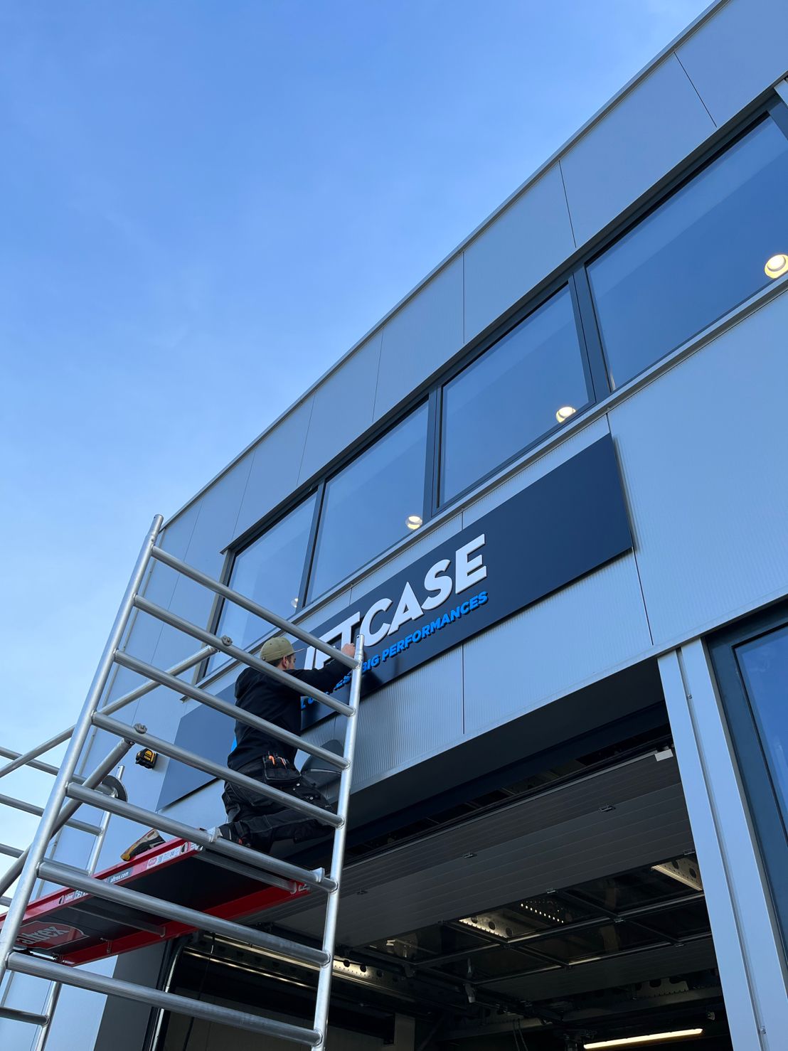 Besides the fleetmarking we also provide the (illuminated) facade advertising at various locations. The facade advertisement at Reedijk 5 in Heinenoord is provided with day/night foil which makes the letters black during the day and white during the dark hours. The right look thanks to advice from Design Log.