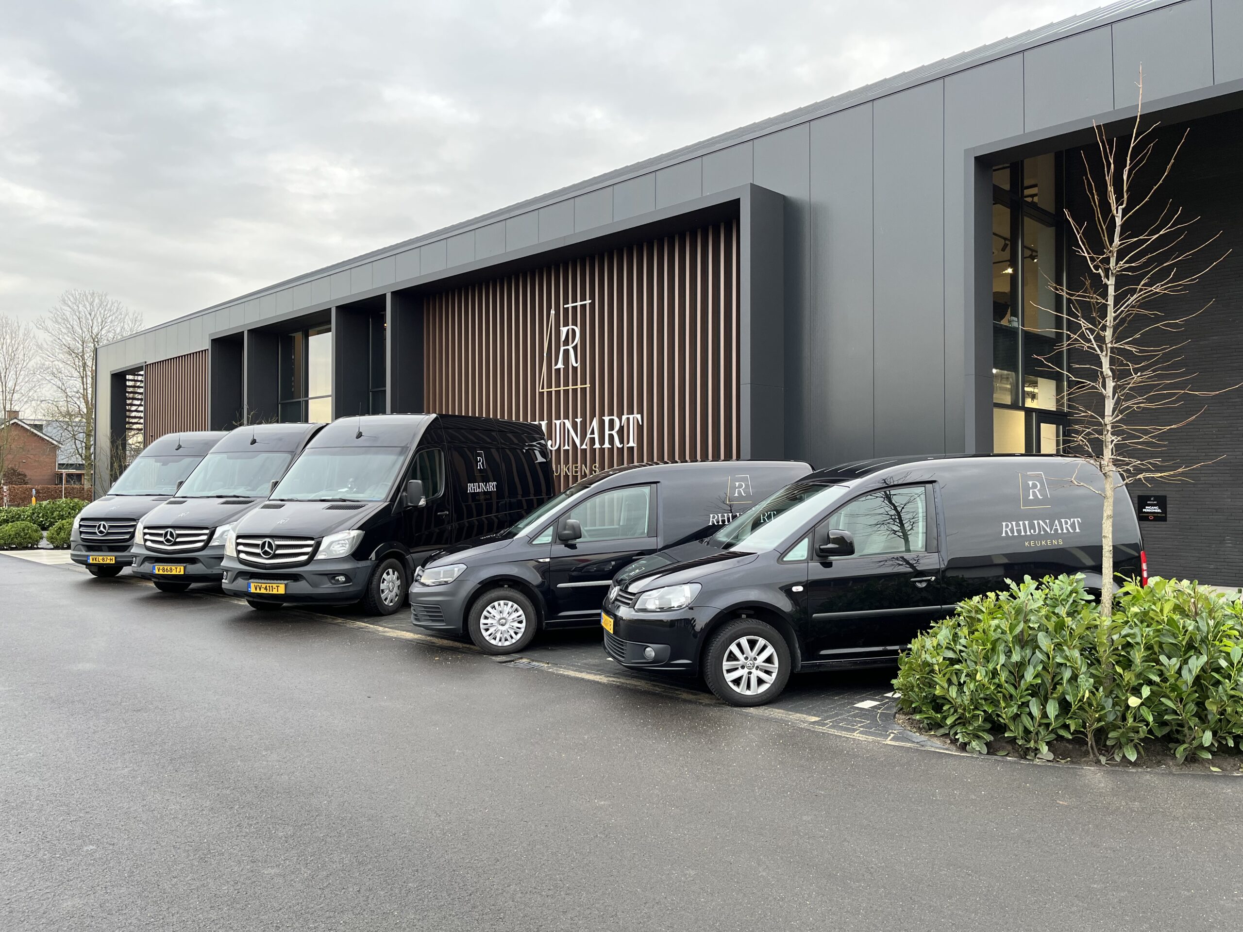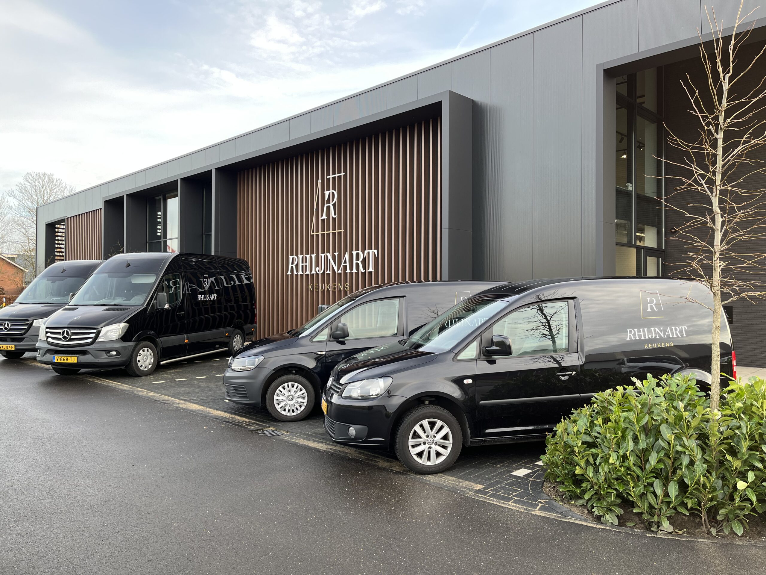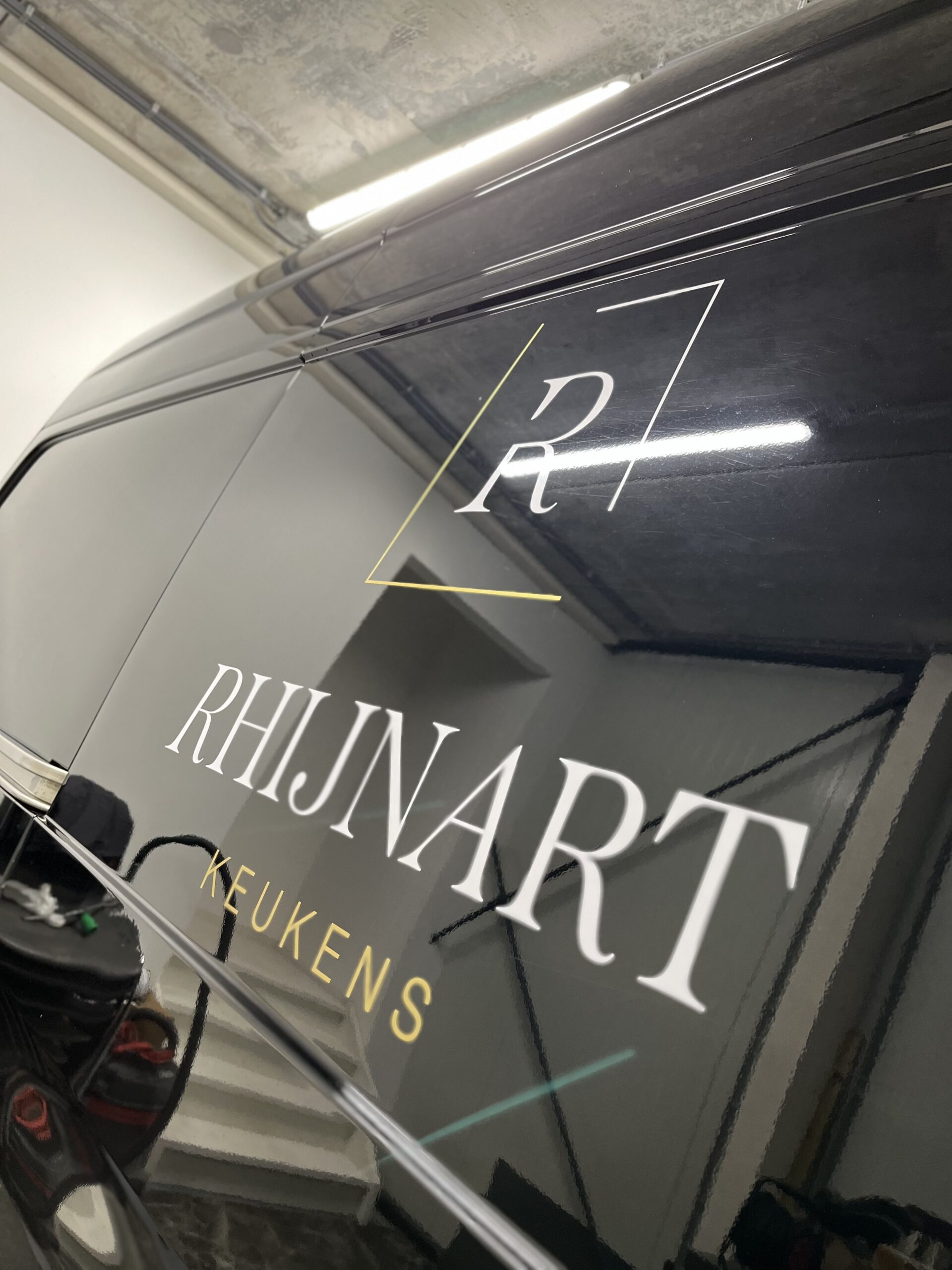 The first collaboration with RhijnArt goes back to 2015. Since that time all kinds of advertising have been delivered, but when they built their new showroom we were allowed to advertise the entire building inside and out. From interior signage in gold metallic, to meter-sized facade logos and all company cars provided with a renewed corporate identity, everything came along. A wonderful project in which many different applications were used to achieve a sleek result.
