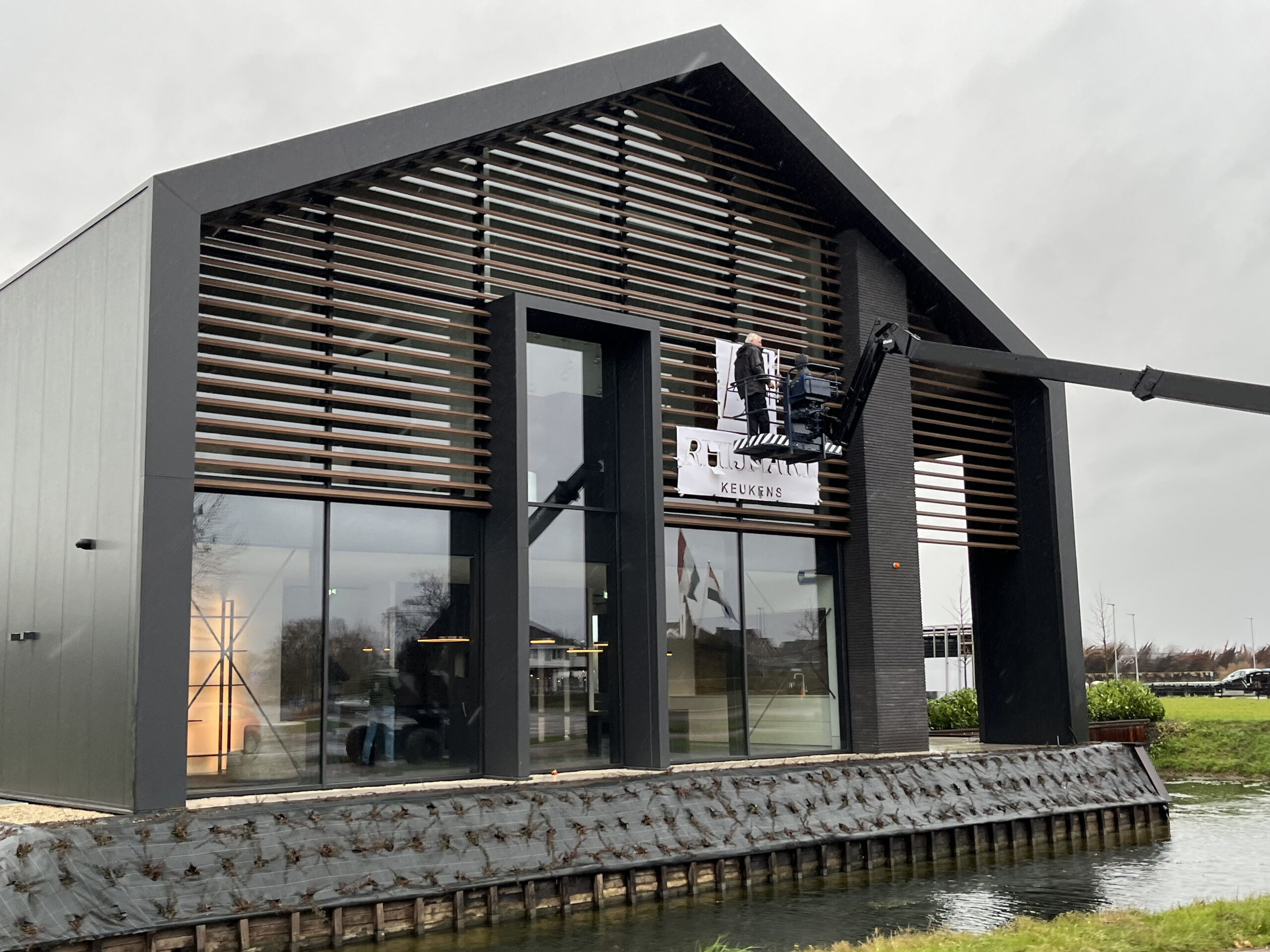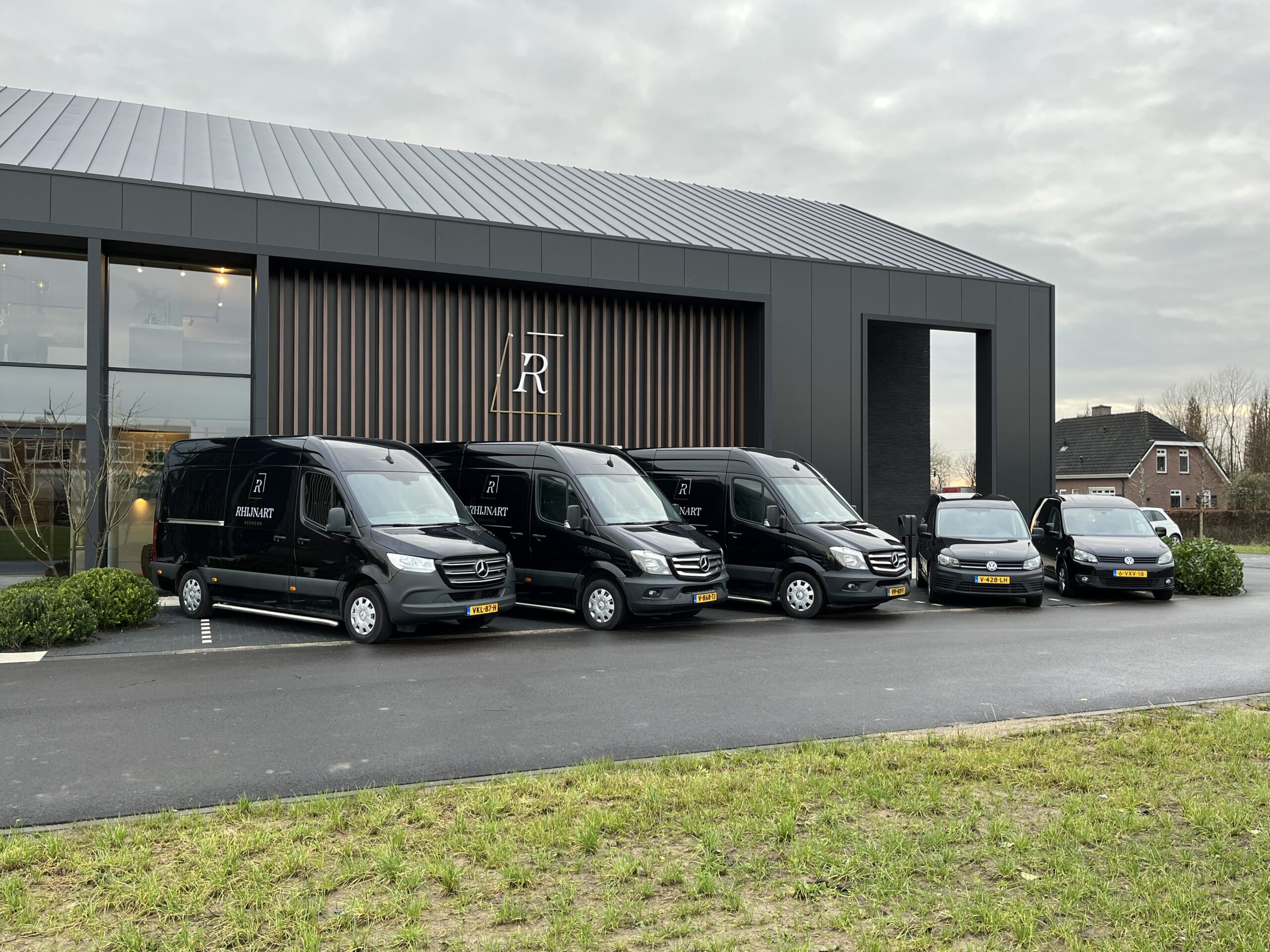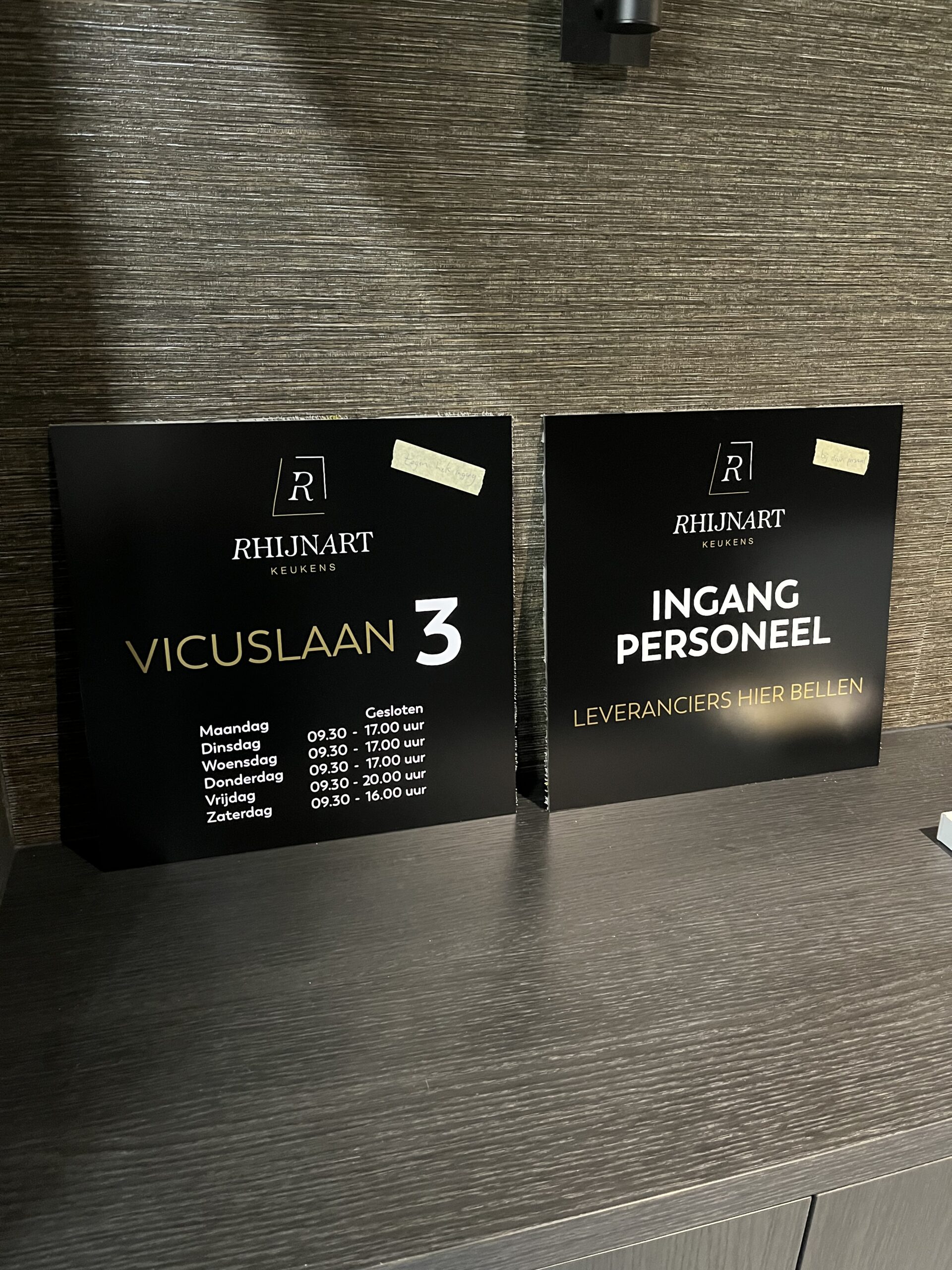 The first collaboration with RhijnArt goes back to 2015. Since that time all kinds of advertising have been delivered, but when they built their new showroom we were allowed to advertise the entire building inside and out. From interior signage in gold metallic, to meter-sized facade logos and all company cars provided with a renewed corporate identity, everything came along. A wonderful project in which many different applications were used to achieve a sleek result.