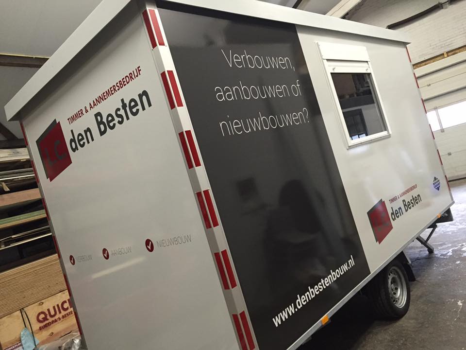 Voor den Besten Bouw B.V. uit Capelle a/d IJssel hebben we al meerdere keten en bussen mogen beletteren. Sinds de aanschaf van 2 nieuwe keten hebben we ook een nieuw ontwerp gemaakt voor deze belettering, nu te zien als effectieve reclame drager op de bouwplaats.